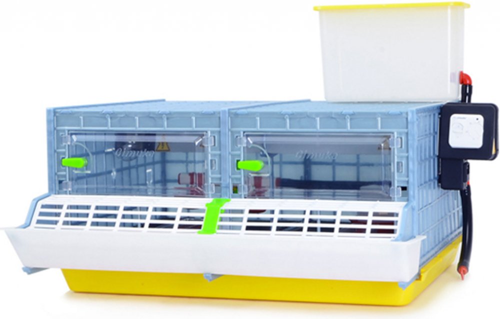 Odchovna drůbeže, až 30 kuřat, 1 podlažní klec, regulovatelná výhřevná jednotka, krmící a napájecí systém, rozměry 72x62x50 cm. Jedná se o kompletní odchovnu kuřat, křepelek, hus, kachen či bažantů za nejnižší cenu v této kvalitě. Kuřátka se v ní budou cítit jako v bavlnce, jelikož tato 1 podlažní klec s 2 oddíly a výškou stropu 24cm, poskytuje naprosto vše, co drůbež ke svému zdravému vývoji potřebuje. Špičková odchovna je vybavena výhřevným systémem s elektronickým termostatem 0-40°C a výstupem na žárovku. Nechybí v ní ani velkokapacitní krmítko s mřížkou proti plýtvání krmiva a napaječky s přívodem vody ze 4l zásobníku. Samozřejmostí je i trusník. Klec s patentovanou technologií Comfortplast je vyrobena z kvalitního plastu, které je pevný a snadno umyvatelný, takže údržba a čištění odchovny bude hračka a vydrží Vám dlouhá léta.