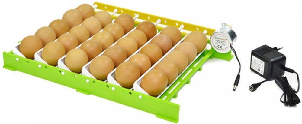 K umístění do líhně Cimuka, s napájecím adaptérem 2W / 5VAC, rozměry 39,5 x 28,5 cm, rošt je vybaven 6ks lisek na slepičí vejce s kapacitou 30ks slepičích vajec, motorek otáčí vejci ve 2 hodinových intervalech, k roštu je možné přikoupit lisky na křepelčí vejce Cimuka QT13 anebo lisky na husí vejce Cimuka GT03.