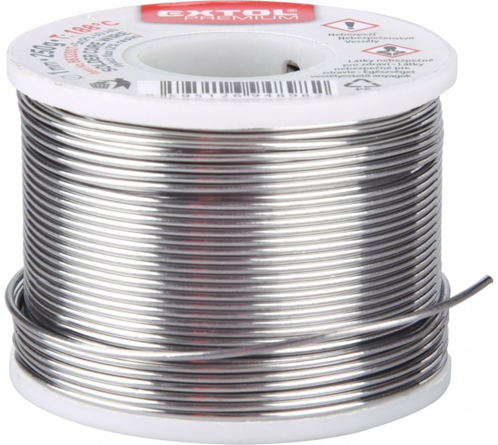 Cín pájecí Sn60Pb40 Extol Premium Upozornění: Vzhledem k novelizaci Nařízení (ES) č. 1907/2006 (REACH) a následným předpisům nelze prodávat cín s obsahem olova široké veřejnosti. Pájecí cín tak mohou zakoupit pouze právnické osoby nebo osoby s oprávněním k podnikání (OSVČ), a to pro profesionální použití. Objednávka je tedy možná pouze s platným číslem IČO. Alternativou dostupnou pro širokou veřejnost je bezolovnatý cín. Pájecí drát pro elektroniku a elektrotechniku. díky poměru cínu a olova s nejnižší dosažitelnou pracovní teplotou 188 °C s tavidlem (pryskyřice 2% uvnitř) průměr: 1 mm balení: v tabulce s variantami