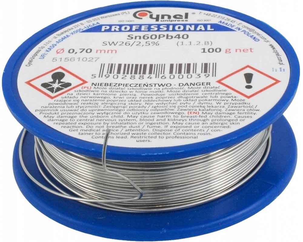 - Úplný název: PÁJECÍ POJIVO S TAVIDLEM CYNEL CÍVKA CÍN 100 g 0,1 kg 0,70 mm Sn60Pb40