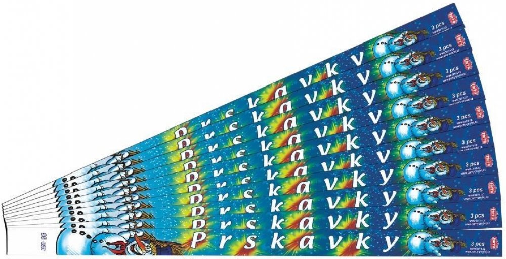 Základní jednotkabalDalší jednotkymj = 1,00 balkart = 60,00 bal Vánoční prskavky zná každý a hodí se nejen na vánoce, nebo Silvestra pro oslavy Nového roku, ale jsou skvělým doplňkem také svateb, firemních večírků, narozeninového nebo svatebního focení. Prskavky 90 cm pap.balení. Počet ks v balení: 3 Délka trvání efektu: cca 170 sec. Napalm: cca 45 cm. NEC: 36 g. Kategorie: F2 - Minimální věková h...