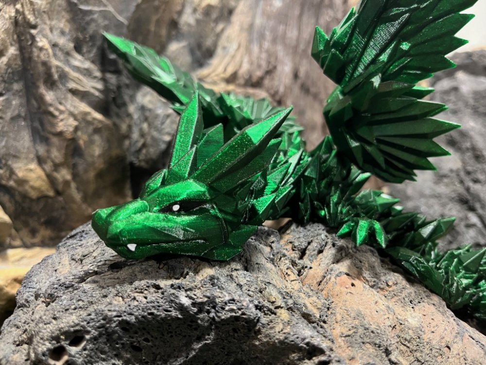 Cinderwings3D Krystalkový drak smaragdový s křídly 46 cm
