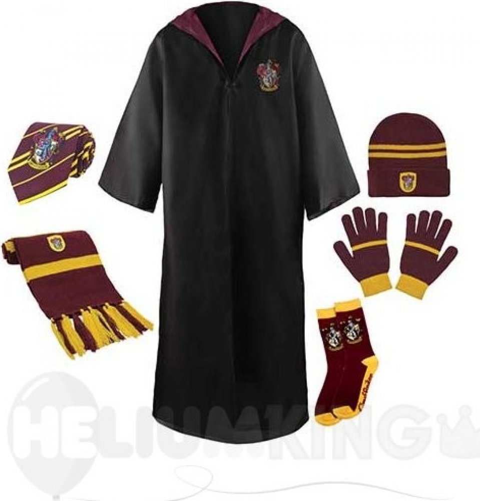 Dárková sada s kostýmem pro správné fanoušky Harryho Pottera obsahuje 6 skvělých kousků oblečení - kouzelnický hábit v barvách koleje Nebelvír, čepici, rukavice, šálu, ponožky a kravatu. Ten správný kostým pro čarodějky a mágy z Bradavic!