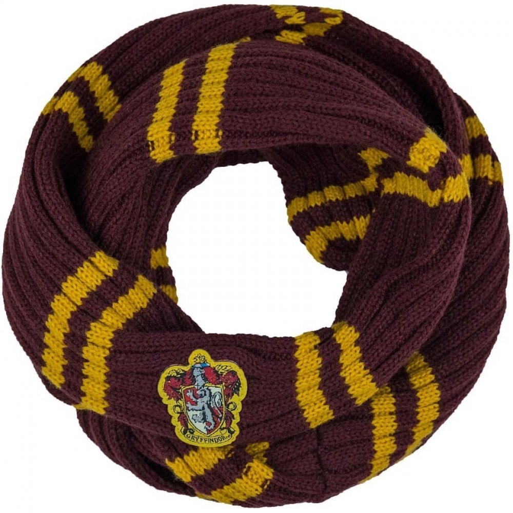 Stylová pruhovaná nekonečná šála ve stylu nebelvírské koleje ze školy čar a kouzel v Bradavicích.