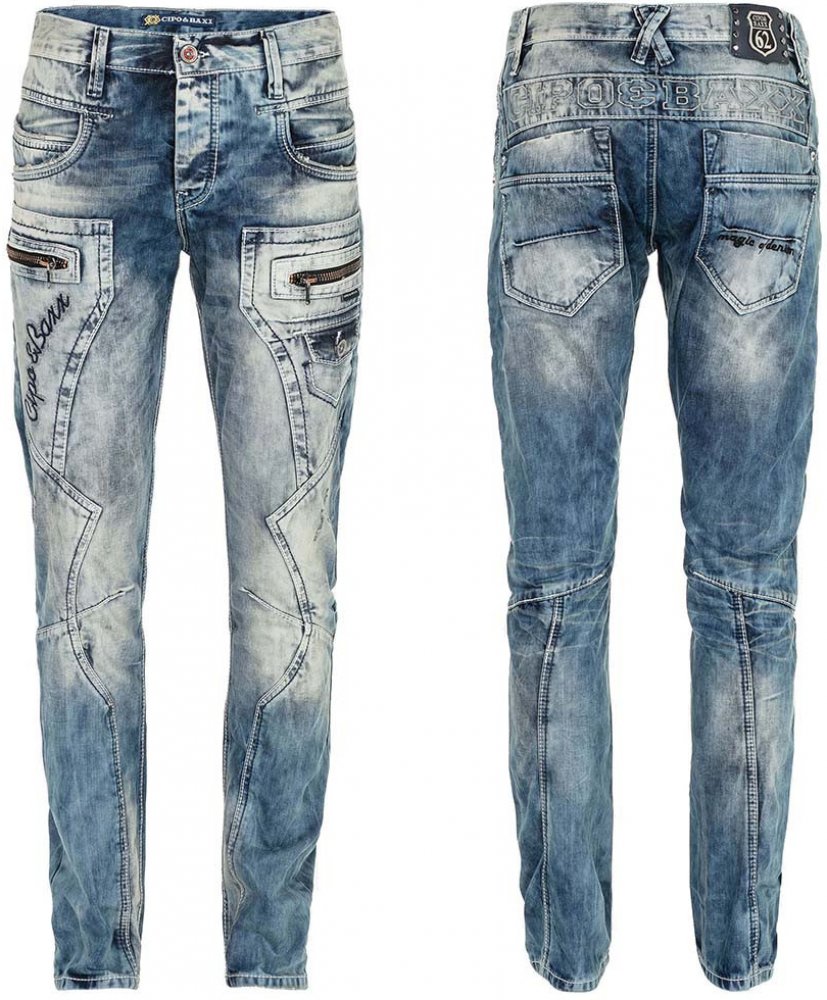 Pánské kalhoty C-1178 od CIPO & BAXX jsou vyrobené ze 100% bavlny. Zapínání kalhot je na knoflíky. Kalhoty jsou zdobené prošíváním, dekorativními zipy, vyšíváním, výraznými švy. Kalhoty jsou střihu regular fit.