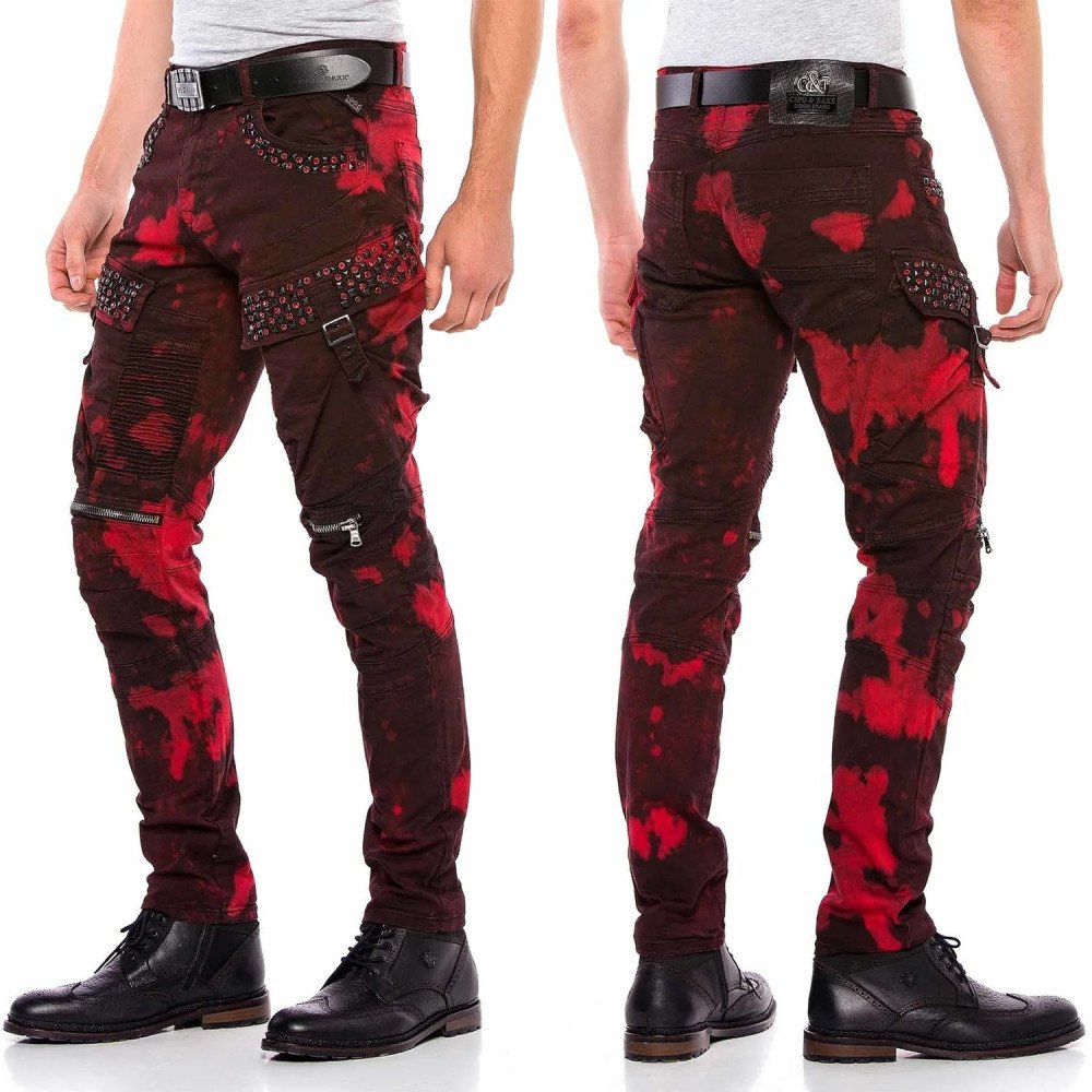 Cipo & Baxx kalhoty pánské CD558 jeans moto design bordó