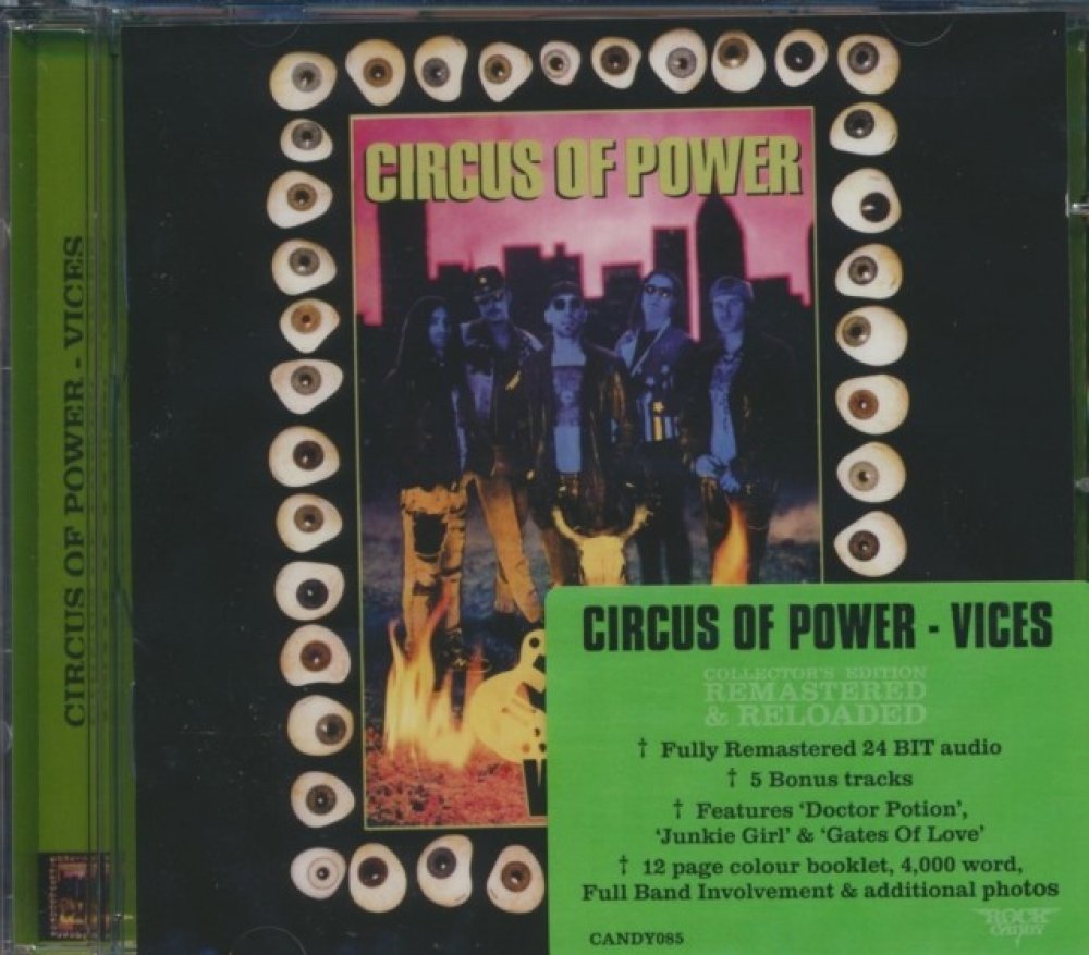Circus Of Power: Vices verze na CD v remasterované edici. Toto konkrétní vydání vyšlo v Velké Británii ve vydavatelství Rock Candy dne 7. června 2011. Album zasahuje do žánrů Rock, Hard Rock, Heavy Metal, Southern Rock a Glam. Remastered & Reloaded Collector's Edition.