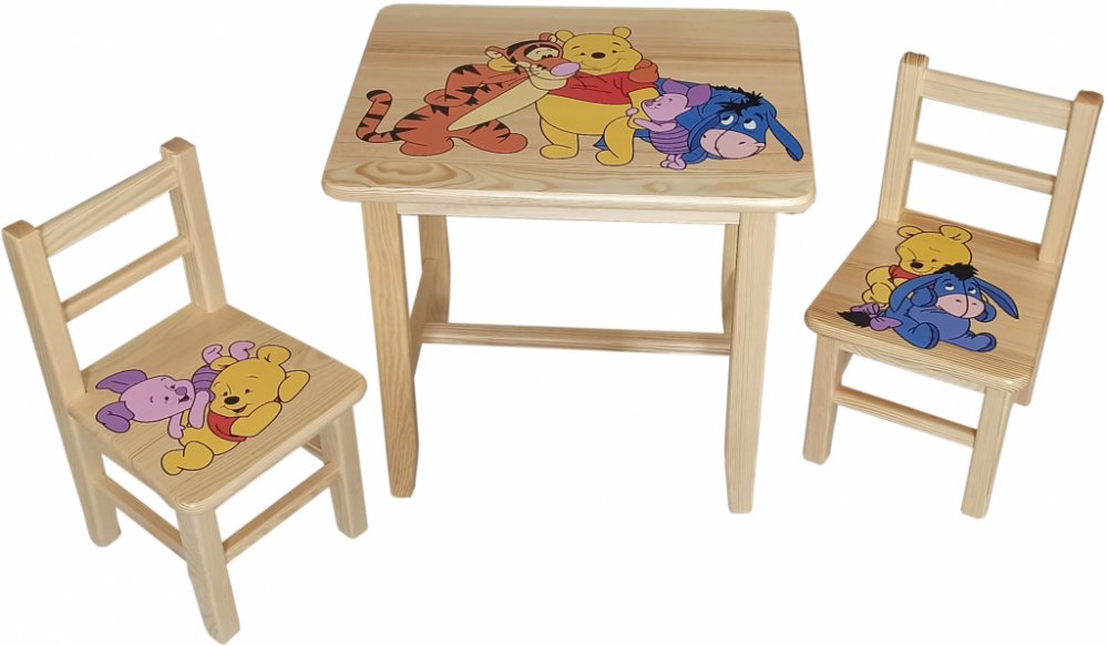 ČistéDřevo Dětský dřevěný stoleček s židličkami Medvídek Pú