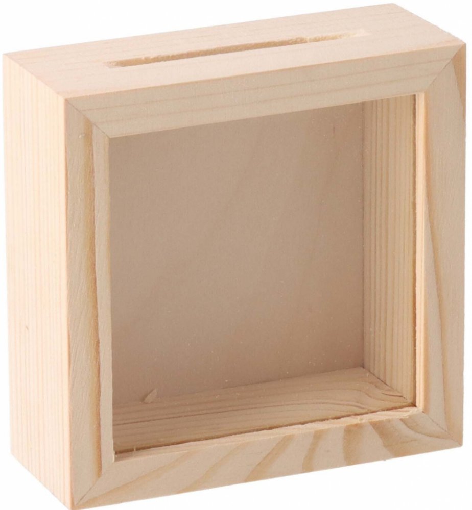 Dřevěná pokladnička s rámečkem a skleněným krytem vás bude inspirovat k šetření peněz například na svatbu, cestování, dovolenou, nákup auta nebo cokoliv, co právě plánujete.