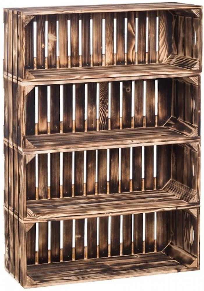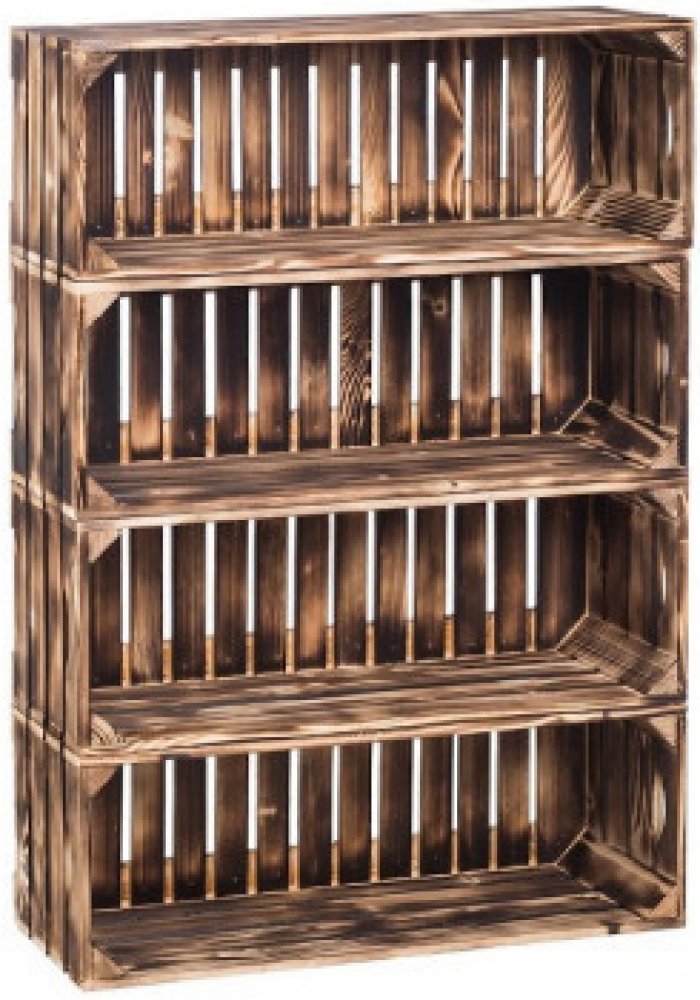 Kupte výhodně ČistéDřevo Dřevěné opálené bedýnky regál 88 x 60 x 24 cm z kategorie Nábytek > Nábytek z bedýnek od výrobce ČistéDřevo. Dřevěný regál vyrobený z masivního borovicového dřeva první jakosti. Pevná a stabilní konstrukce. Ačkoliv se nám líbí přírodní barva dřeva, opálení mu zase dodá trochu šmrnc a ozvláštní jej. Celkové rozměry jsou 88 x 60 x 24 cm (výška x šířka x hloubka). Regál je složen ze čtyř bedýnek o rozměrech 60x22x24 cm. Nosnost každé bedýnky je 20 kg. Sestavu zasíláme jako jednotlivé bedýnky ze dřeva včetně spojovacího materiálu. Bedýnky nejsou předvrtané, takže si je můžete sestavit dle vlastní potřeby. Jako spojující materiál zasíláme náhodně šroubky nebo pásky. Není tento regál podle vašich představ? Nahlédněte do naší široké nabídky regálů, kde si jistě vyberete ten pravý.