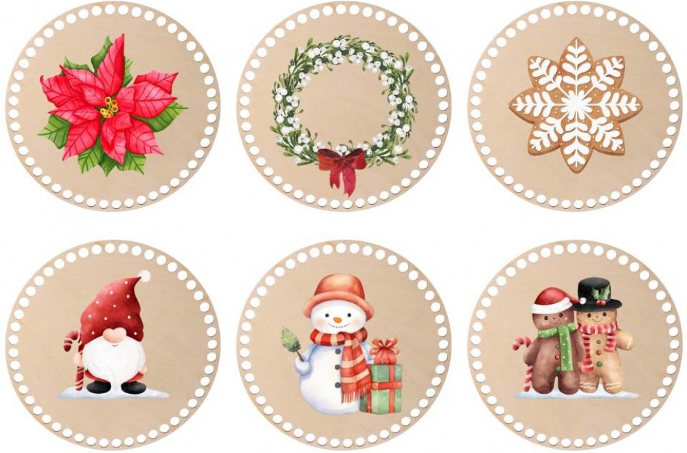 ČistéDřevo Dřevěné podtácky k obháčkování vánoční symboly 13cm