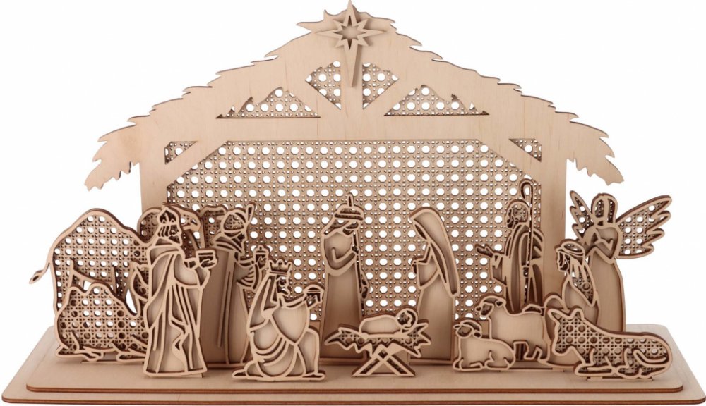 Kupte výhodně ČistéDřevo Dřevěný betlém lepený z kategorie Kategorie | Dřevěné dekorace a dekorace z proutí | Vánoční betlémy ze dřeva od výrobce ČistéDřevo. Dřevěný betlém je tradiční vánoční dekorace, která v domácnosti vykouzlí tu pravou sváteční atmosféru. Tato krásná interiérová ozdoba je precizně vyřezávaná laserem a následně ručně lepená. Poctivá ruční práce spolu s jemnými detaily zaručuje, že tento netradiční betlém bude zdobit váš interiér dlouhá léta.Na výrobu betlému byla použita březová překližka o síle 3 mm, jednotlivé vrstvy jsou pevně spojeny kvalitním lepidlem. Díky stabilnímu podstavci můžete betlém postavit na okenní parapet, poličku nebo komodu.Rozměr podstavce je 45,7 x 15,2 cm.Výška betlému v nejvyšším bodě je 25,1 cm.Betlém zasíláme rozložený, ale nemějte obavy, složení je jednoduché, protože stačí jednotlivé komponenty vložit do připravených výřezů.Na výrobku může vzniknout opálení z důvodu výřezu na laseru, suky a drobné nedokonalosti jsou běžnou součástí překližky.