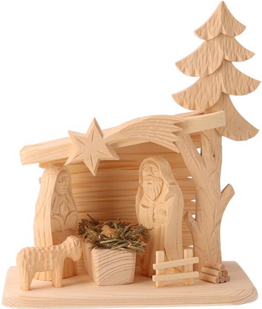 Celková výška dřevěného betlému je přibližně 27 cm. Betlém zasíláme zkompletovaný včetně přilepených figurek.