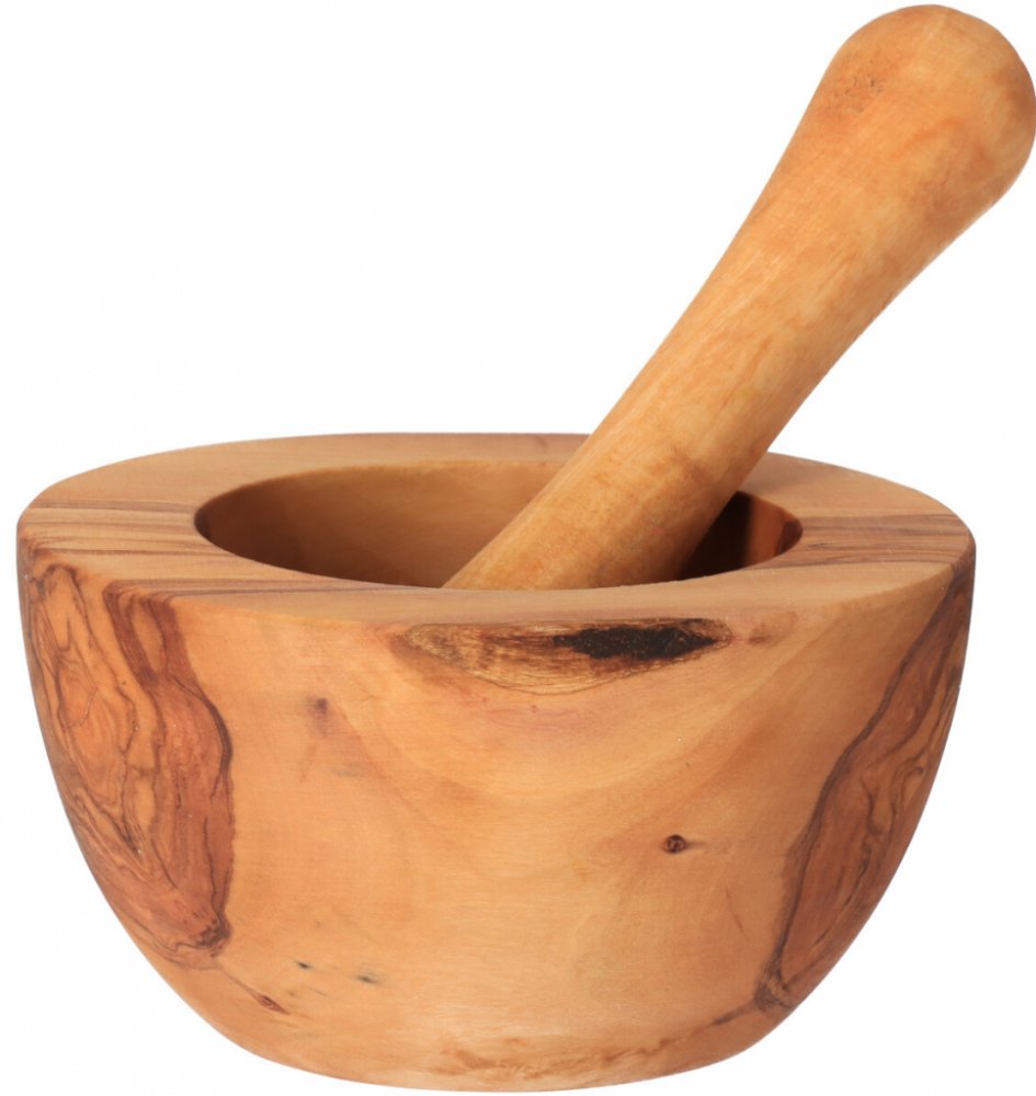Hmoždíř z olivového dřeva umožňuje kombinovat koření, připravovat omáčky nebo pesto. Je velmi pevný a odolný, díky čemuž můžete rozdrtit téměř všechny přísady.