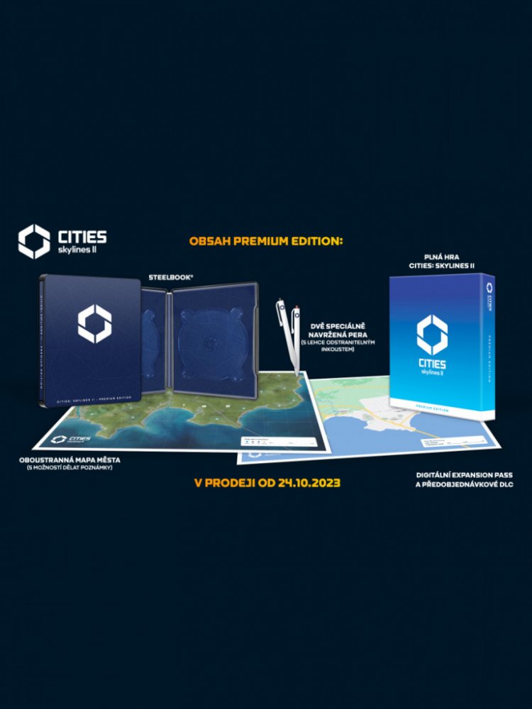 plná hra steelbook oboustranná mapa města, na kterou můžete dělat poznámky dvě speciálně navržená pera C:S II pro tvorbu poznámek s lehce odstranitelným inkoustem Digitální bonus Expansion Pass obsahující: