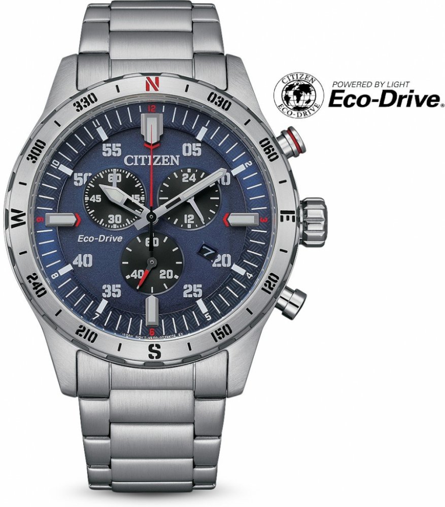 Eco-Drive: Díky solárnímu pohonu se nemusíte starat o výměnu baterií a můžete se plně soustředit na své dobrodružství. Pokud necháte tyto hodinky delší dobu na místě mimo zdroj světla, dojde automaticky k přepnutí na šetřící režim. Po vystavení slunci se ale velmi rychle opět probudí k životu.
