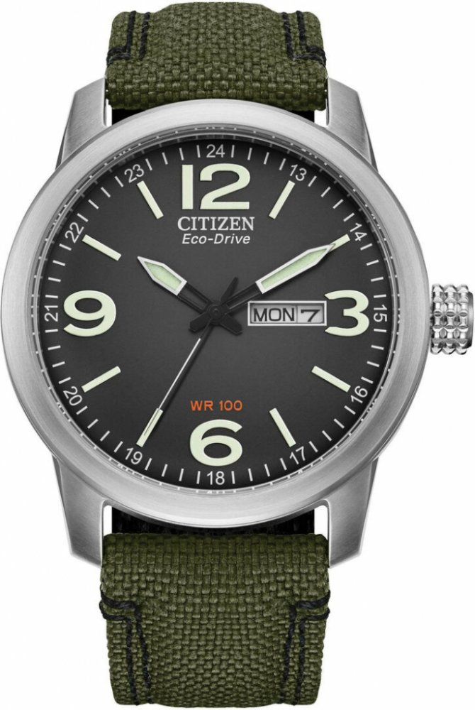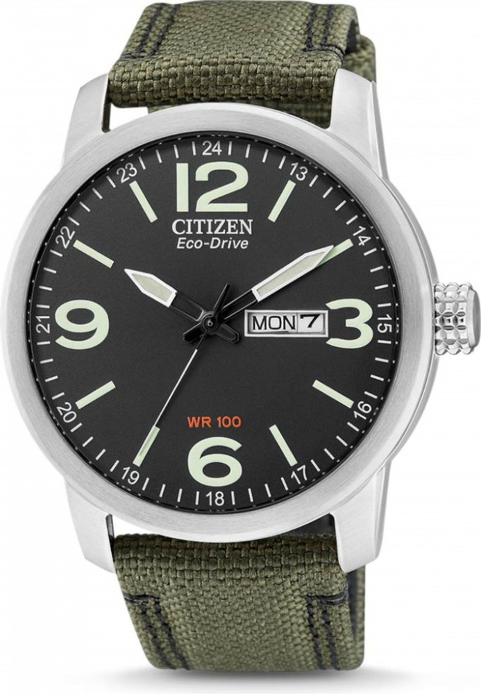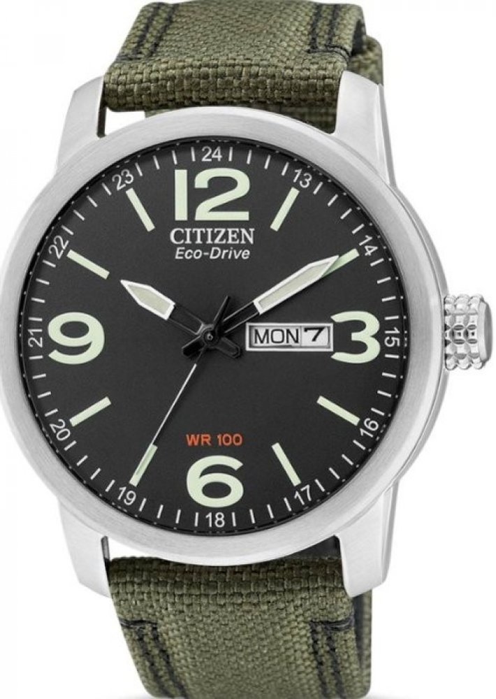 Vyjímečné pánské hodinky Citizen BM8470-11EE nabízejí moderní design ve spojení výborné kvality. Stříbrné pouzdro je na lesklé a jemně hladké na dotek. Textilní řemínek v tmavě zeleném barevném provedení perfektně doplňuje černý displej. Na ciferníku jsou vyznačena hlavní čísla arabskými číslicemi – ostatní doplňují jednoduché lineární indexy.