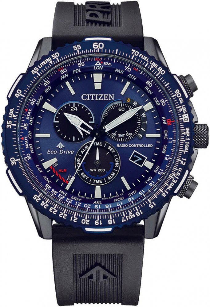 Pánské hodinky Citizen Promaster Sky Eco-Drive Radio Controlled CB5006-02L jsou sportovního designu a hodí se na každodenní nošení. Hodinky jsou velmi dobře čitelné a díky luminiscenční vrstvě v ručičkách a indexech jsou velmi dobře čitelné i v noci. Hodinky jsou vodotěsné do hloubky 200 metrů (200M). Toto je vodotěsnost, kterou hodinky vydrží v naprostém klidu, bez pohybu, který ve vodním sloupci násobí tlak. V praxi toto označení znamená, že se s hodinkami můžete potápět až do hloubky 20 metrů. Hodinky jsou osazeny strojkem vlastní výroby s označením Eco-drive. Systém Eco-drive zajistí dobíjení vysoce účinného titan-lithiového akumulátoru již při mírném osvětlení a nezáleží, jestli je světlo umělé nebo přírodní. Čím více světla však na číselník dopadá, tím rychleji se akumulátor dobíjí a tím rychleji se nabije na plných 10 měsíců rezervy chodu (hodinky mohou poté jít po dobu 10 měsíců i v naprosté tmě a až 36 měsíců ve tmě v úsporném režimu). V prvopočátku, nebo byly-li hodinky delší dobu schované, je ideální hodinky během nošení odkryté a mít je co nejvíce na světle. Po určitém čase, kdy už je akumulátor nabitý naplno, lze čerpat z plné kapacity akumulátoru a hodinkám na dobíjení postačí trochu světla denně. Strojky Citizen umí detekovat plný akumulátor a dokáží další přísun energie ze solárních senzorů číselníku zastavit v případě, že je již akumulátor plný a tím ochránit a maximálně prodloužit životnost akumulátoru. Současně strojek umí dát informaci posunem vteřinové ručičky po dvouvteřinových intervalech, že akumulátor je nedostatečně nabitý a tím upozorní majitele/majitelku hodinek o nutnosti vystavit hodinky světlu. Ode dne, kdy se poprvé začne pohybovat vteřinový ručička po dvouvteřinových intervalech vydrží kapacita akumulátoru ještě na 1 týden chodu hodinek. Hodinky disponují výsečí ukazatele rezervy nabitého akumulátoru, stále máte tedy na očích stav nabití akumulátoru. Eco-drive u strojku Citizen E660 je natolik výkonný, že pokud jsou hodinky zcela vybité a vystavíte je dennímu světlu po dobu 35 hodin, akumulátor se nabije do plného stavu. Pouhé 3 minuty denně přímého slunečního svitu (100.000 luxů) stačí tomto strojku na celodenní kapacitu pohonu a pokud tyto hodinky budeme nosit v uzavřených prostorách, kde je umělé světlo (kolem 500 luxů), hodinky se dobijí na chod jednoho dne za 4 hodiny. Za normálního dne, když je oblačno (10.000 luxů), se hodinky z zcela vybitého stavu naplno nabijí za 65 hodin. A chcete-li si hodinky nabít doma nezávisle na nošení, postačí je položit číselníkem nahoru 20cm pod 30 Wattovou lampičku a hodinky se Vám nabijí pro nastartování chodu za 7,5 hodin. Energie navíc se ukládá do akumulátoru až do stavu maximálního nabití 10 měsíců. Další výhoda systému Eco-drive je ta, že v hodinkách osazených tímto strojkem odpadá jakákoliv výměna baterie, což do budoucna šetří nejen Váš čas a Vaší peněženku, ale i životní prostředí.