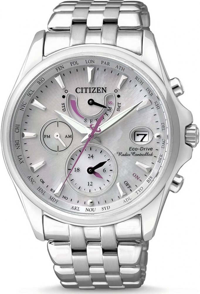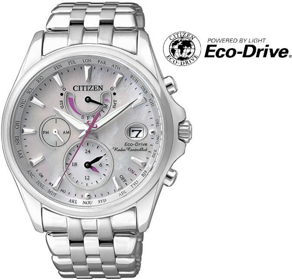 Potěší vás také jejich vysoká voděodolnost do 100m (plavání). Článkový ocelový řemínek má motýlkový typ zapínání - hodinky jednoduše zapnete i rozepnete na vašem zápěstí. Mezi funkce a vlastnosti dámských hodinek Citizen Elegant patří: duální čas, rádiové řízení, světové časy, alarm, automatický kalendář i kontrola stavu baterie. Tento model sofistikovaně představuje jedinečný kousek, který skvěle doplní každý módní look.