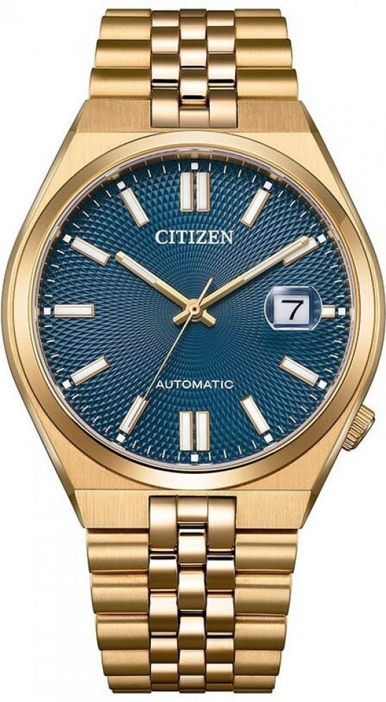 Citizen analogové ocel elegantní pánské automatické ocel 50 m automatické 140 g safírové bez osazení Elegant kulaté zlatá modrá s luminiscencí sklapovací přezka 2.2 cm na ruku bez číslic zlatá ocel 60 h s dočasným svícením (luminiscence/LED) s občasnou údržbou (automatické) bez chytrých funkcí