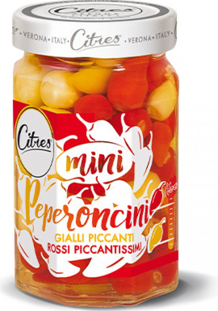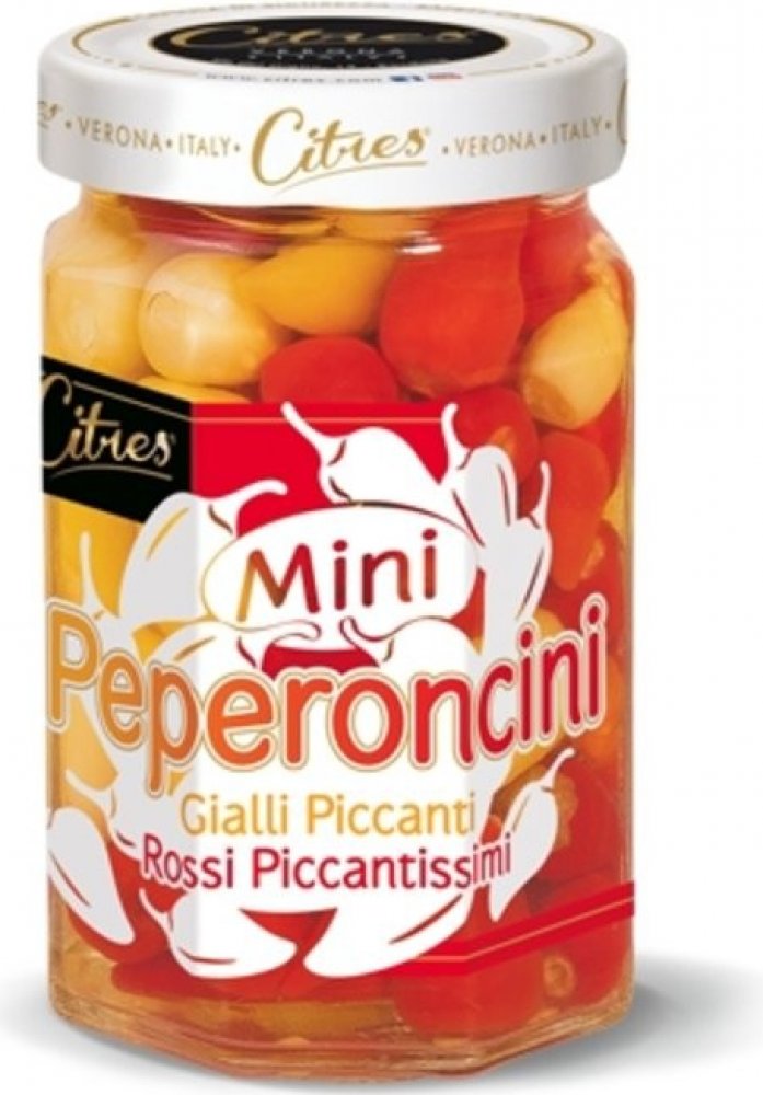 Mini barevné chilli papričky ve vinném octu CITRES 290g Pálivé zářivě žluté a extra pálivé červené papričky naložené do vinného octa Vás zahřejí po celém těle. A pokud si při dochucování pokrmu říkáte, že tomu "něco" chybí, tak pár barevných pokrájených papriček bude jistě přesně to něco. STERILOVANÁ ZELENINA VE SLADKOKYSELÉM NÁLEVU. PÁLIVÝ VÝROBEK. Složení Pálivé chilli papričky (žluté pálivé, če...