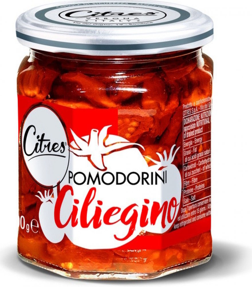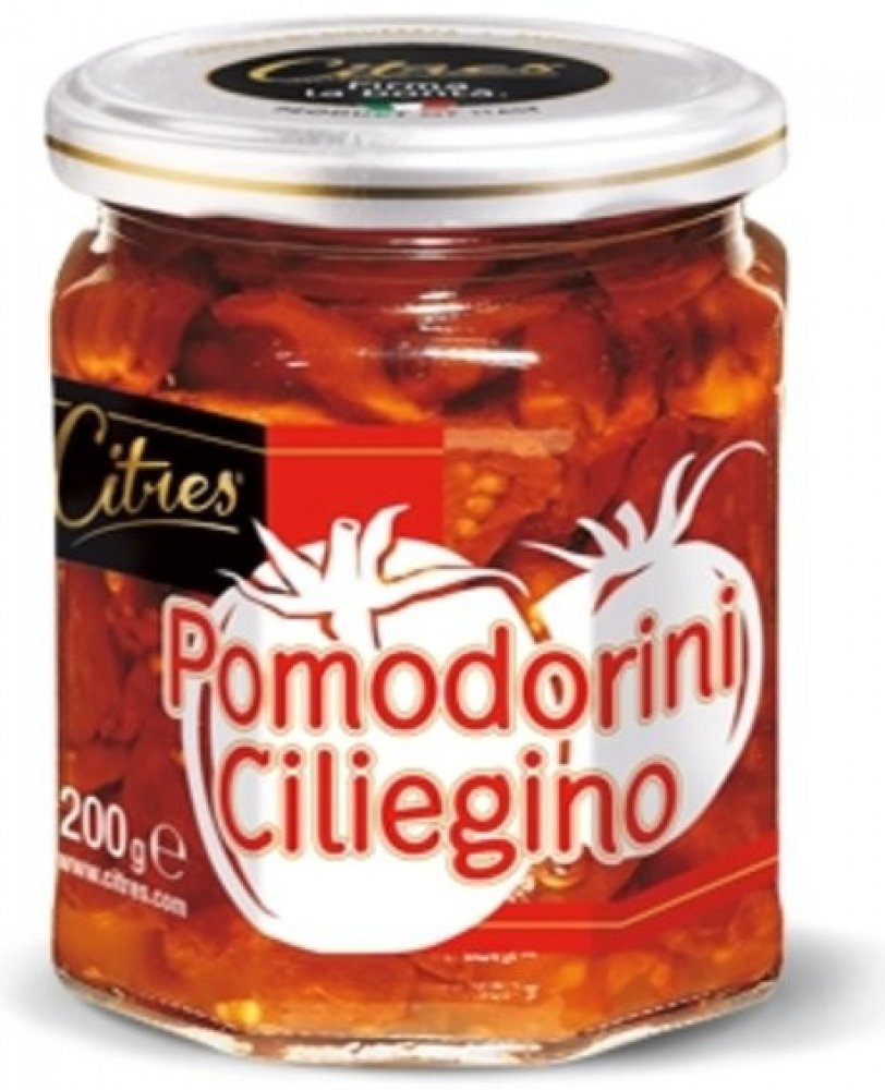 Citres Sušená cherry rajčata v oleji nabízejí koncentrovanou chuť slunce a Středomoří. Zralá cherry rajčata jsou šetrně sušena a naložena do kvalitního slunečnicového oleje s bylinkami, díky čemuž si zachovávají svou přirozenou sladkost i šťavnatost. Skvěle se hodí do salátů, na těstoviny, pizzu nebo do sendvičů, kde zvýrazní chuť každého pokrmu.