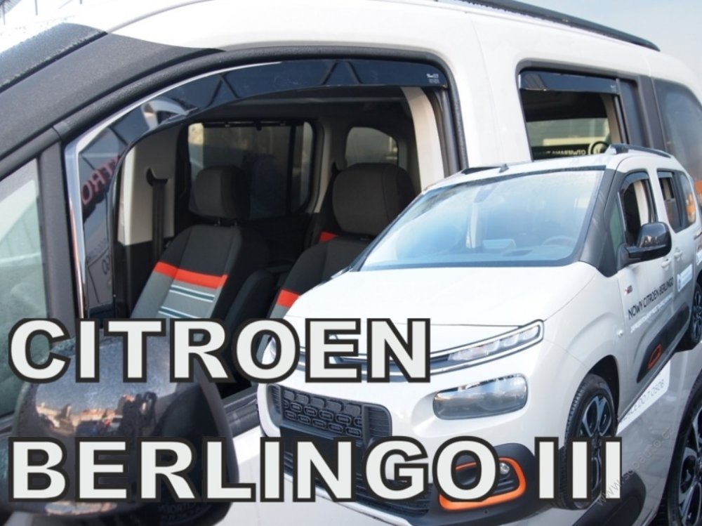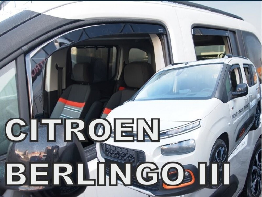 Ofuky - deflektory pro automobil Citroen Berlingo . Sada obsahuje 2ks přesných ofuků na přední okna vč. sady montážních plíšků ( pozn. není u každého modelu podmínkou).