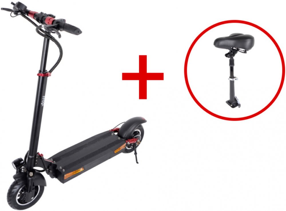 Koloběžku lze volitelně vybavit i skládacím sedlem.