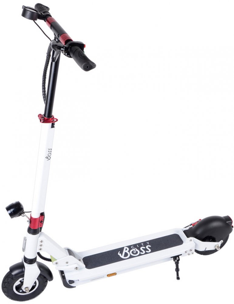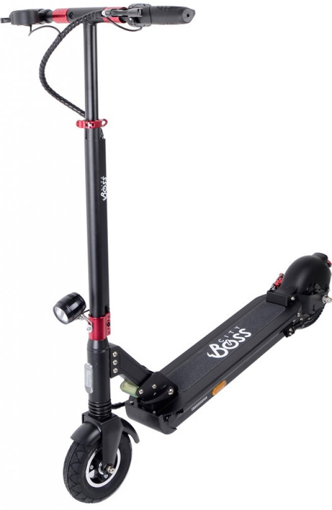 Koloběžka splňuje technické požadavky normy Evropské unie EN 17128. S bezpečným skládacím mechanizmem jí složíte či rozložíte do 5 vteřin a při hmotnosti 17,3 kg jí snadno převezete autem, vlakem, MHD nebo uskladníte doma či v garáži. Bezúdržbový motor s ohromujícím výkonem 500 W svižně zrychluje i při zatížení 100 kg a vyveze vás i do prudšího kopce. Tlačítkem na displeji můžete přepínat mezi 3 režimy pro omezení max. rychlosti. Při delších cestách oceníte tempomat, který udržuje výkon koloběžky i bez stisknutého plynu - jeho funkci lze případně deaktivovat na displeji. Baterii Li-Ion 13 Ah dobijete přenosnou nabíječkou ze zásuvky 220 V na plnou kapacitu za 5-7 hodin. Při běžném provozu s koloběžkou na jedno nabití ujedete až 35 km - při kratších cestách jí tak nemusíte pokaždé dobíjet. Celková vzdálenost může být kratší i delší; vždy závisí na hmotnosti jezdce, členitosti terénu, stylu jízdy, venkovní teplotě apod. Nouzově lze na koloběžce dojet odstrkováním i s vypnutým motorem. Na transreflexním displeji skvěle čitelným i na přímém slunci či v noci můžete sledovat aktuální stav baterie, aktuální rychlost, dobu jízdy a ujetou vzdálenost. USB port zezadu displeje má funkci powerbanky. Lze přes něj nabíjet váš mobilní telefon či tablet, a to buď za jízdy nebo při stojící koloběžce pomocí 2-hodinového časovače. S kovovým světlem o výkonu 400 lumenů a dosvitem 10 metrů již nebudete potřebovat žádné dodatečné osvětlení ani při vyšší rychlosti. Přední i zadní světlo napájené z centrální baterie zapnete spínačem na řídítkách, kde je umístěno i tlačítko houkačky. Koloběžku zastavíte zadní kotoučovou brzdou. Rám koloběžky z leteckého hliníku snese zatížení až 120 kg. S výškově nastavitelnými řídítky s ergonomickými gripy je koloběžka vhodná pro jezdce s postavou 150 - 210 cm. Z důvodu bezpečnosti je doporučený věk pro používání koloběžky od 16 let. Na 48 cm dlouhém a 15 cm širokém nášlapu se pohodlně svezete s chodidly za sebou. Pneu s průměrem 8" (přední nafukovací, zadní pevné) snadno překonají i drobné nerovnosti. Odolný přední a zadní tlumič snižuje nepříjemné vibrace během jízdy. Kola jsou chráněna blatníky. Elektrická koloběžka City Boss naplňuje novou vizi ekologického světa. Vybavená špičkovou technologií promění každou jízdu městem v nevšední zážitek!