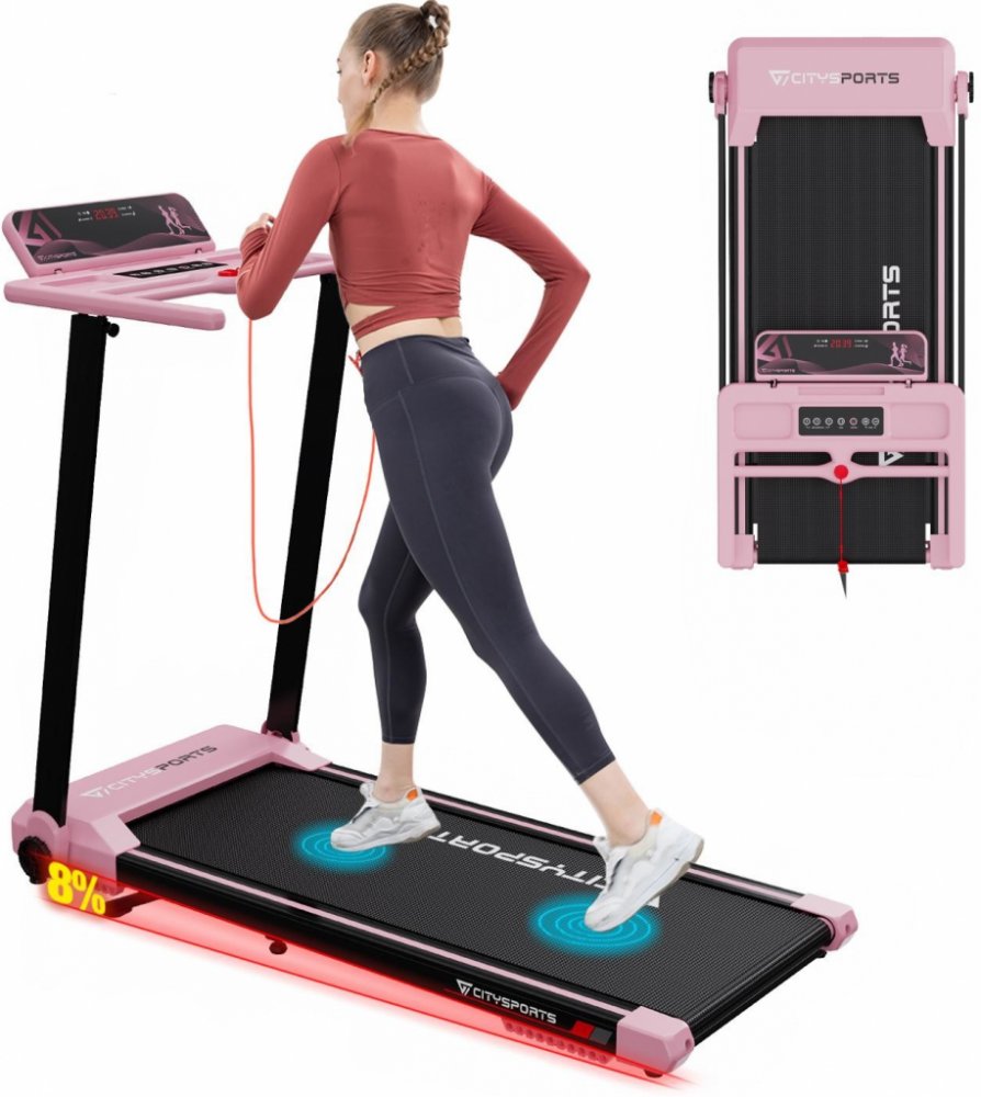 Špičkový výkon 2,0 HP Špičková síla 1-12 km/hSnadná instalace, maximální hmotnost 110 kgPojezdová plocha 400 x 1020 mm, vícevrstvý pojezdový pás, účinné tlumeníInteligentní displej a funkce APP, všechny údaje na první pohledStabilní opěrky rukou, snadné skládání, s transportními kolečky na spodní straněSkládací běžecký pás s Bluetooth Běžecký pás CITYSPORTS je profesionální značka běžeckého pásu p...