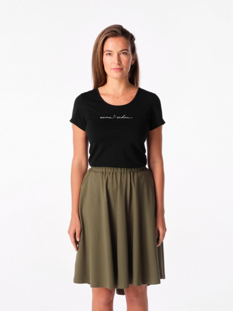Buďte Sama sebou Kolikrát už jste v životě slyšela, co byste měla? Měla byste říkat tohle, měla byste vypadat takhle, měla byste si myslet toto. Jaká ve skutečnosti jste, určujete jen vy sama. Tričko s potiskem Sama sebou je symbolem odvahy jít vlastní cestou. Je to postoj, který hlásá Jsem taková, jaká chci být. Dodejte si sebejistotu každý den. Tričko, na kterém není vidět pot, je k tomu jako st...