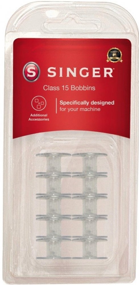 Plastová Cívka Singer třídy 15 pro domácí šicí stroje, baleno po 10 kusech . Cívka Třídy 15 nejpoužívanější cívka pro domácí šicí stroje. Je vhodná pro všechny současně prodávané mechanické modely SINGER a většinu elektronických šicích strojů. Cívka plastová SINGER Třídy 15 je vyrobena z kvalitního plastu zajišťující tvarovou stálost a torzní tuhost. Vhodné pro stroje SINGER: MA, MB, CC, CD, EB Up...