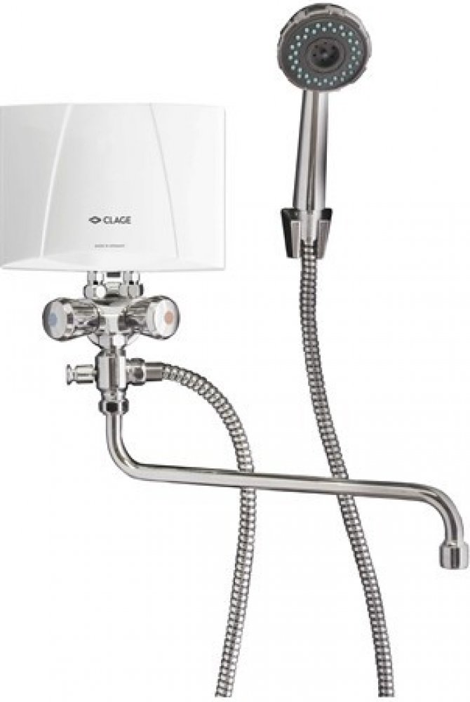 Sestava malého průtokového ohřívače v kompletu s kombinovanou baterií pro umyvadlo a sprchu. Kohoutková baterie je vybavena přepínačem pro napojení sprchové hadice a otočným výtokovým raménkem o délce 30 cm. Vhodné pro místa s omezeným příkonem elektrické přípojky a zaměřením na letní provoz. Komplet osahuje vše pro okamžitou montáž a nabízí dobrý poměr výkonu a ceny.
