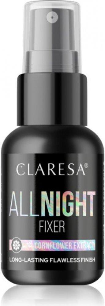 Claresa All Night Fixer, 50 ml, Fixace make-upu pro ženy, Před odchodem z domu se dokonale nalíčíte a za pár hodin už se lesknete nebo se vám na tváři objevují šmouhy? Podobné situaci pomůže předejít fixační sprej Claresa All Night Fixer . Udrží make-up, pudr, ale i oční stíny a produkty pro líčení obočí na svém místě a zafixované tak, že se nebudou rozmazávat, blednout, rozpíjet či slévat do vrás...