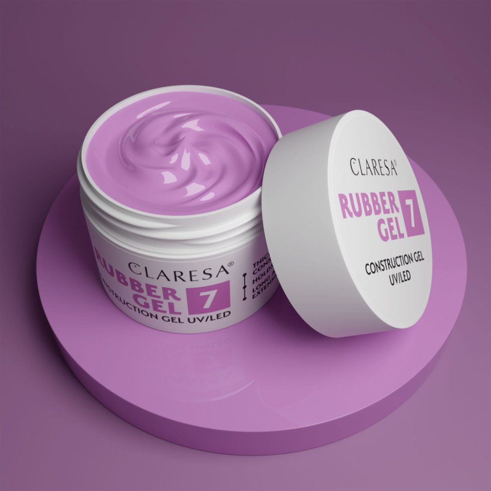 Claresa UV/LED gumový gel na nehty 07, 45 g je silný a odolný gel ideální pro modeláž a prodlužování nehtů. Odstín 07 je jemně fialový, který dodá nehtům sofistikovaný vzhled. Gel je odolný vůči teplotám a nestéká, což zajišťuje přesnou aplikaci.