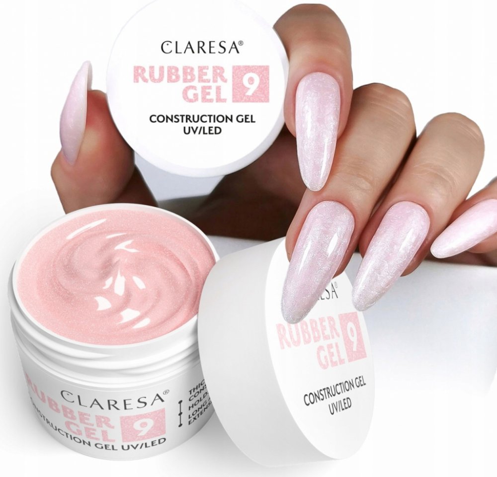 Claresa UV/LED gumový gel na nehty 09, 90 g je silný a odolný gel ideální pro modeláž a prodlužování nehtů. Odstín 09 je nude růžový se třpytkami, který dodává nehtům elegantní a třpytivý vzhled. Gel je odolný vůči teplotě a nestéká, což umožňuje přesnou aplikaci.