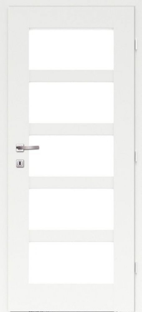 Pokojové dveře s rámovou konstrukcí. Masívní rámová konstrukce je vyrobena z MDF, prosklené provedení, sklo Satin. Tyto interiérové dveře jsou nabízeny v bílém dekoru, v barvě, která je stále ve veliké oblibě a dokresluje moderní a nadčasový vzhled těchto dveří. Interiérové dveře jsou dodávány včetně zámku a závěsu. Součástí dodání není kování a zárubeň. Uvedené rozměry jsou bez falce.