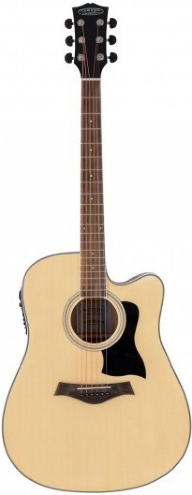 Elektroakustická kytara typu dreadnought leském černém provedení s přední deskou ze smrkového dřeva a zadní deskou a luby z Mahagonu Sapele. Krk je vyroben z javoru. Šířka těla 40 cm, šířka nultého pražce 43 mm. Nechybí olejová mechanika, perleťové vložky, hardware v provedení chrom nebo vestavěný předzesilovač s 3-pásmovým ekvalizérem a LED ko...