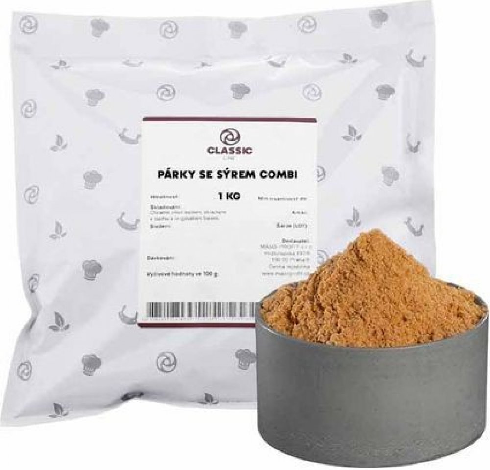 Speciální kořenící směs pro výrobu párků se sýrem, která dodává jemně kořeněnou a harmonickou chuť s lehce pikantním nádechem. Obsahuje vyváženou kombinaci pepře, muškátového ořechu, zázvoru a česneku doplněnou o sýrové aroma, které zvýrazní mléčnou a krémovou chuť uzenin.✅ Ideální pro párky se sýrem – zvýrazňuje chuť a aroma sýra✅ Vyvážená kombinace koření – jemná pikantnost s krémovým dozvukem✅ Snadné dávkování – doporučená dávka 10 g/kg pro konzistentní výsledky Doporučené dávkování: 10 g/kg Použití: Pro dochucení tepelně opracovaných masných výrobků, zejména párků se sýremVylepšete své uzenářské výrobky s touto kvalitní směsí pro lahodné párky se sýrem!Combi - kompletní směs koření s obsahem fosfátůKvalita od českých výrobcůTo je originální řada koření, přísad a směsí CLASSIC LINE. Naši technologové se spojili, aby společně vyvinuli produkt nadstandardní tuzemské kvality. Vyzkoušejte ho i vy.Řada CLASSIC LINE navazuje na dlouho tradici vysoce kvalitního českého řeznictví a uzenářství. Poctivý výrobek od Čechů pro Čechy vznikl za jediným účelem – usnadnit Vaši výrobu. Spolehlivost a stálost dodávaného koření jsou naše priority.Objem výroby roste a udržet vysokou kvalitu masných výrobků není jednoduchý úkol. Kořenící směsi musí uspokojit potřeby náročného zákazníka. Proto můžete v řadě CLASSIC LINE najít mimo jiné také směsi bez „Éček“, glutamátu, barviv nebo alergenů. Tyto směsi označujeme zkratkami BE, BG, BF a BA.Úcta k tradici, preference maloobchodních zákazníků a řeznické know-how jsou základní stavební kameny řady CLASSIC LINE, kořenící směsi pro živnostenské dílny, střední provozy i největší podniky masného průmyslu.Složení: Směs koření (pepř, muškátový ořech, zázvor, česnek), stabilizátor E451, sýrové aroma, látka zvýrazňující chuť a vůni E621, zahušťovadlo E415, antioxidant E300, barvivo E120.