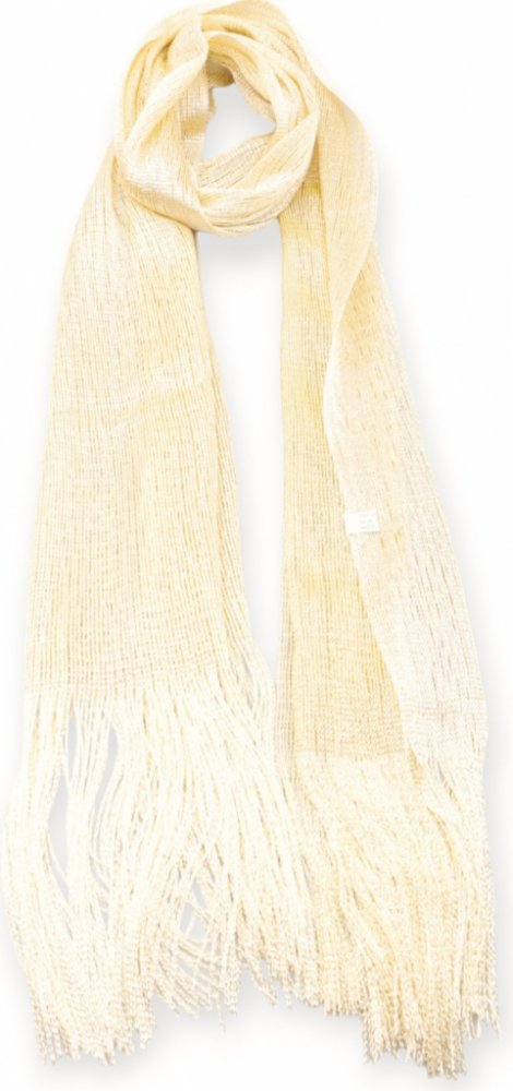 Třpytivá šála na krk, slavnostní pléd přes šaty Barva: smetanová, zlatá ... Vzor: bez vzoru, pletená Rozměr: šířka: 55 cm; délka: 180 cm Materiál: viskóza a stříbrné vlákno Použití: slavnostní šála na ples, přes šaty na svatbu, jako štola na letní párty Jemně pletená šála se zlatou nití v elegantní smetanové barvě. Šála na slavnostní příležitosti jako doplněk k šatům, p...