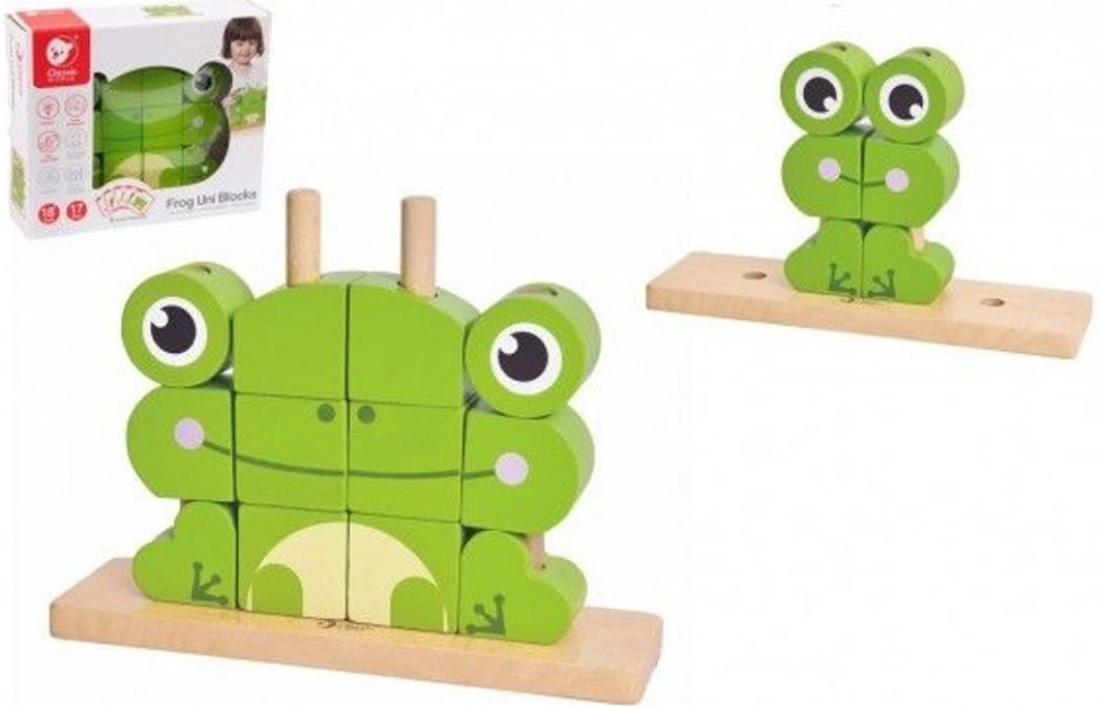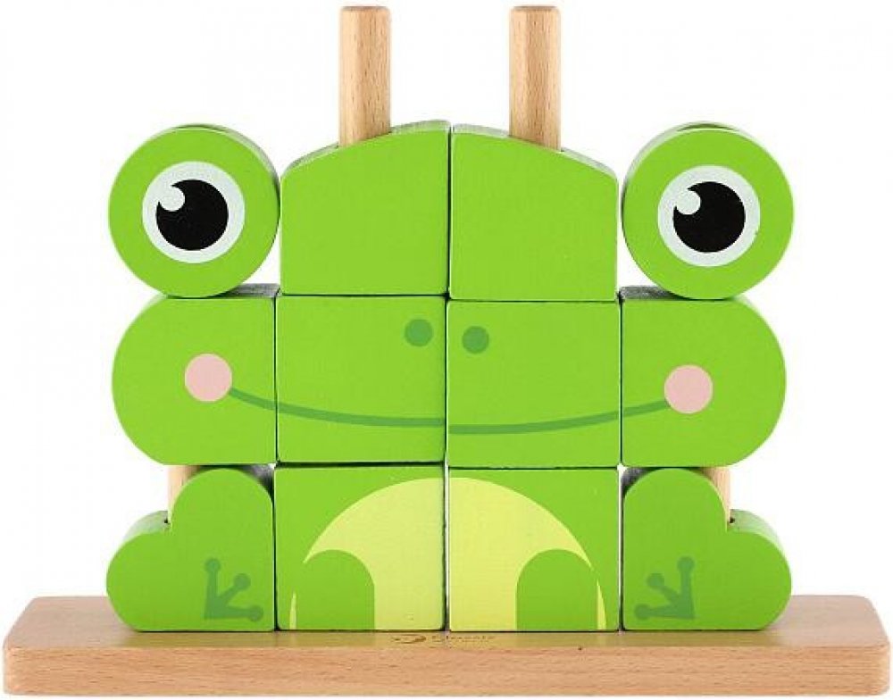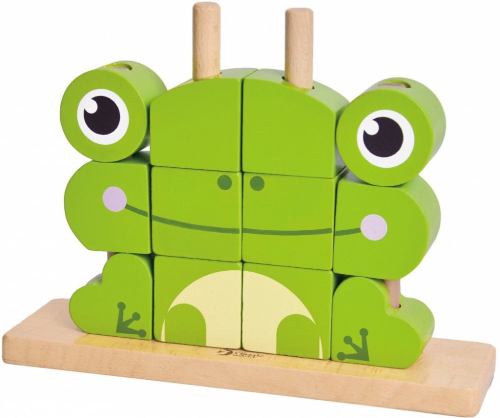 Dřevěné prostorové kostky Žába zajistí dlouhé hodiny zábavy.