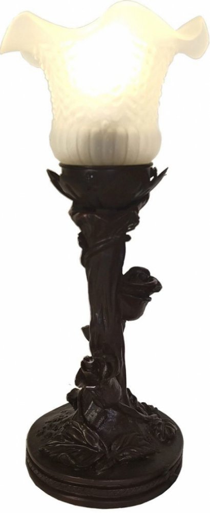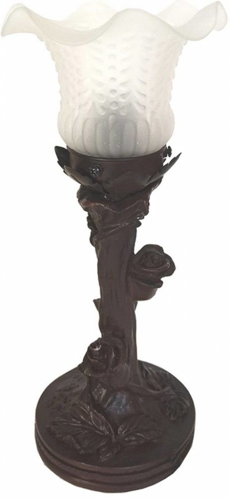 Krásná malá stolní lampa TIFFANY. Zajímavý tvar lampy a stínidla, které imituje květ, potěší svým vzorem a barvou. Lampa mění odstín v závislosti na typu a sytosti osvětlení. Tento model ozdobí váš stůl, komodu nebo noční stolek. Lampa se hodí jak do klasických interiérů, tak do romantičtějších. Doporučujeme také pro restaurace a stylové penziony.Rozměry: Ø 12*31 cm E14/max 1*25WMateriál: Poly Res...