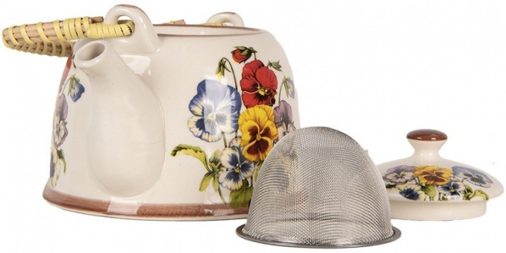 Clayre & Eef Krémová konvička s maceškami a se sítkem 18x14x12 cm 800 ml