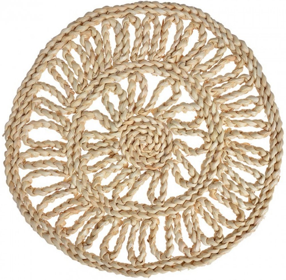 Clayre & Eef Přírodní slaměné kulaté prostírání Boho se vzorem Ø 30x1 cm