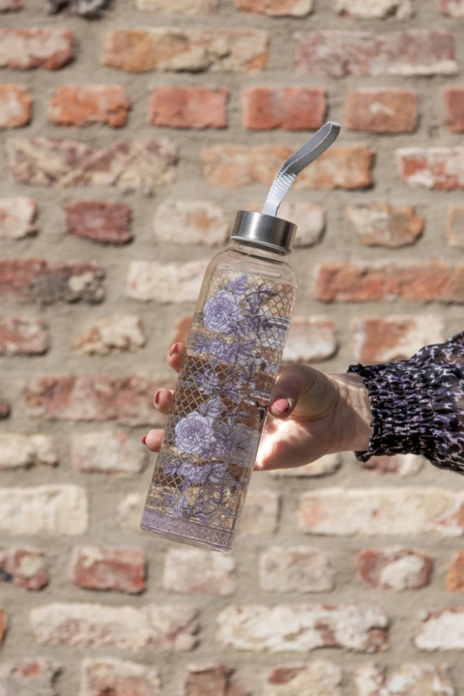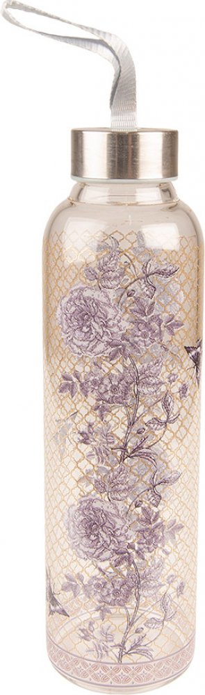 Clayre & Eef Skleněná láhev zdobená květy s uzávěrem 650 ml