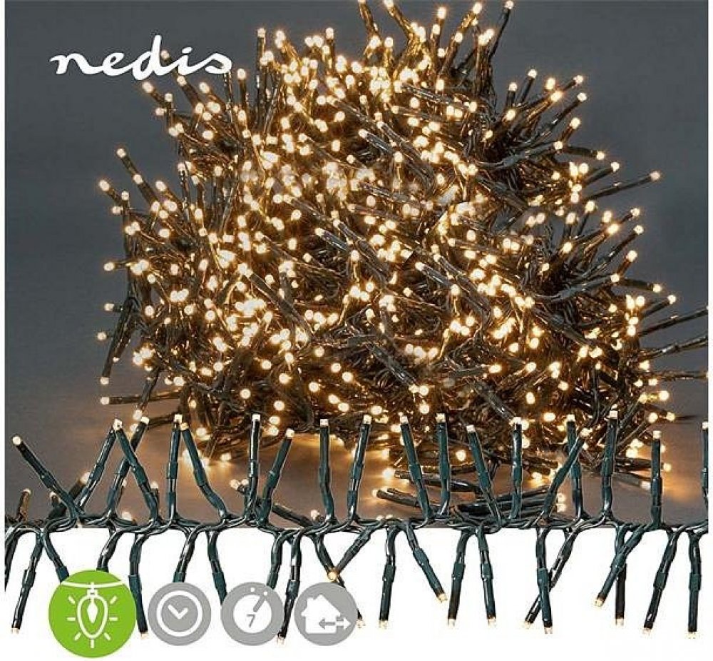Tato Nedis® dekorativní LED světla ve tvaru bodlin o délce 11 metru vytvoří ve Vašem domě příjemnou atmosféru teple bílého světla. Umístěte světla, jak jen chcete, ať už rovně, cikcak nebo do kulatého tvaru a vyberte jeden ze 7 přednastavených efektů, které hrají různými tvary, nebo režim stálého svícení. Používejte přednastavený časovač zapnutí a vypnutí k naplánování svícení a už nikdy se světelný řetěz nezapne ve špatnou dobu.Zelená barva kabelu se hodí na jakýkoli strom nebo pozadí, protože nijak nenarušuje výsledný vzhled. Řetěz obsahuje celkem 1512 LED diod s rozestupem 0,7 centimetru od sebe. Díky celkové délce 14 metru se nemusíte bát, že napájecí kabel nedosáhne k některé zásuvce. To se velice hodí zejména tehdy, pokud máte zásuvku kousek dál. Řetěz je možné používat uvnitř i venku.- Dekorativní světelný řetěz ve tvaru bodlin o délce 11 metru s 1512 LED diodami na zeleném kabelu- Příjemné teple bílé světlo- Vhodná pro použití venku i uvnitř- 7 přednastavených světelných efektů a režim stálého svícení- Vybaven s časovačem vypínání v poměru 6/18 hodin, tím pádem řetěz svítí vždy, když si přejete.- Napájecí kabel o délce 3 metry- Vhodný do rozmezí teplot −30 °C až 60 °CVlastnosti:- Vstupní napětí: 220 - 240 V AC 50/60 Hz- Typ zdroje napájení : Síťové napájení- Barva světla: Teplá Bílá- IP krytí: IP44- Spotřeba energie za 1 000 hodin: 8 kWh- Zástrčka: Euro / Typ-C (CEE 7/17)- Energetická třída: E- Vnitřní / venkovní: Vnitřní nebo Venkovní- Barevná teplota: 2500 K- Rozšiřitelný světelný pásek: Ne- Jmenovitý světelný tok: 1000 lm- Délka kabelu napájecího adaptéru: 3.00 m- Zdroj světla: LED- Funkce časovače: 6 Hodin Zapnuto/18 Hodin Vypnuto- Lehké efekty: 7- Vyměnitelné lampy: Ne- Provozní teplota: -30 - 60 °C- Kabelová barva: Zelená- Počet LED: 1512 LED's- Maximální spotřeba energie: 9.96 W- Typ dekorativního světla: Shluk- Délka kabelu: 14.00 m- Osvětlená délka: 11.00 mObsah balení:- Dekorativní LED světla- Venkovní napájecí adaptér- Rychlá instalační příručka