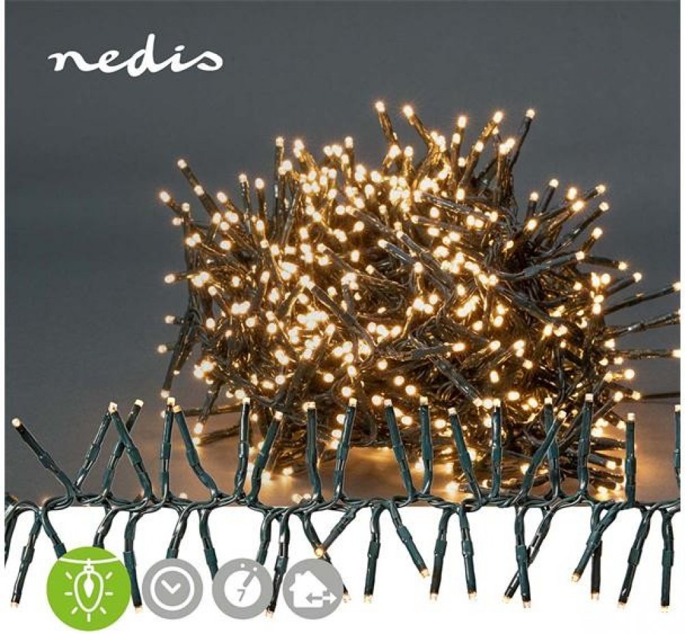 Tato Nedis® dekorativní LED světla ve tvaru bodlin o délce 4,2 metru vytvoří ve Vašem domě příjemnou atmosféru teple bílého světla. Umístěte světla, jak jen chcete, ať už rovně, cikcak nebo do kulatého tvaru a vyberte jeden ze 7 přednastavených efektů, které hrají různými tvary, nebo režim stálého svícení. Používejte přednastavený časovač zapnutí a vypnutí k naplánování svícení a už nikdy se světelný řetěz nezapne ve špatnou dobu.Zelená barva kabelu se hodí na jakýkoli strom nebo pozadí, protože nijak nenarušuje výsledný vzhled. Řetěz obsahuje celkem 576 LED diod s rozestupem 0,7 centimetru od sebe. Díky celkové délce 7,2 metru se nemusíte bát, že napájecí kabel nedosáhne k některé zásuvce. To se velice hodí zejména tehdy, pokud máte zásuvku kousek dál. Řetěz je možné používat uvnitř i venku.- Dekorativní světelný řetěz ve tvaru bodlin o délce 4,2 metru s 576 LED diodami na zeleném kabelu- Příjemné teple bílé světlo- Vhodná pro použití venku i uvnitř- 7 přednastavených světelných efektů a režim stálého svícení- Vybaven s časovačem vypínání v poměru 6/18 hodin, tím pádem řetěz svítí vždy, když si přejete.- Napájecí kabel o délce 3 metry- Vhodný do rozmezí teplot −30 °C až 60 °CVlastnosti:- Vstupní napětí: 220 - 240 V AC 50/60 Hz- Typ zdroje napájení: Síťové napájení- Barva světla: Teplá Bílá- IP krytí: IP44- Zástrčka: Euro / Typ-C (CEE 7/17)- Jmenovitý světelný tok: 260 lm- Spotřeba energie za 1 000 hodin: 4 kWh- Vnitřní / venkovní: Vnitřní nebo Venkovní- Barevná teplota: 2500 K- Rozšiřitelný světelný pásek: Ne- Délka kabelu napájecího adaptéru: 3.00 m- Energetická třída: G- Počet LED: 576 LED's- Zdroj světla: LED- Funkce časovače: 6 Hodin Zapnuto/18 Hodin Vypnuto- Lehké efekty: 7- Vyměnitelné lampy: Ne- Provozní teplota: -30 - 60 °C- Kabelová barva: Zelená- Vzdálenost mezi lampy: 0.7 cm- Délka kabelu: 7.20 m- Osvětlená délka: 4.20 m- Maximální spotřeba energie: 3.67 WObsah balení:- Dekorativní LED světla- Venkovní napájecí adaptér- Rychlá instalační příručka