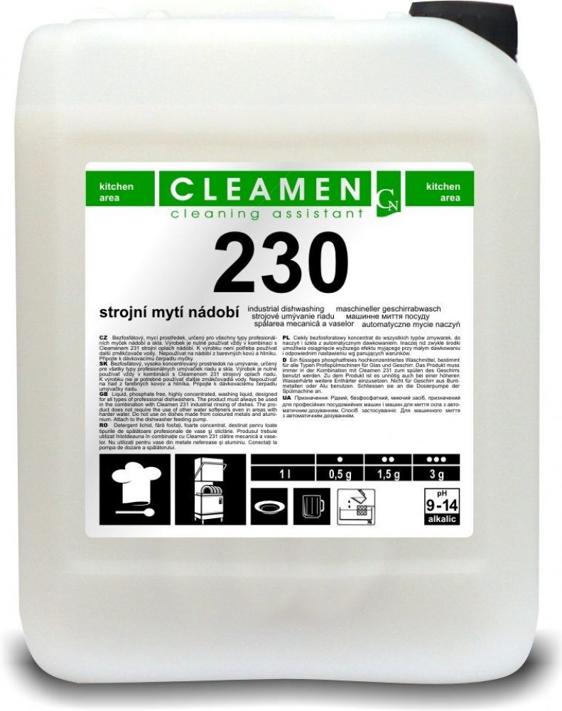 Výrobek se používá vždy v kombinaci s Cleamenem 231 strojní oplach nádobí.