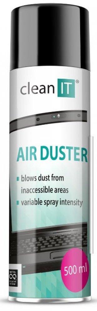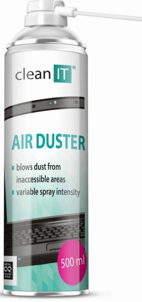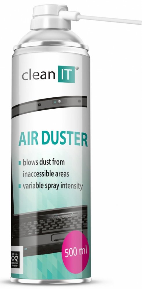 CLEAN IT stlačený plyn 500ml Popis produktu: Stlačený plyn pro čištění (vyfoukávání) citlivých nebo nepřístupných míst elektronických zařízení (PC, notebooků, klávesnic, CD/DVD/Blu-ray mechanik, tiskáren atd.) a optických přístrojů (kamer, objektivů). Bílá tryska L’Oréal zajišťuje nejvyšší tlak vyfoukávaného plynu ze všech trysek na trhu. Zároveň umožňuje variabilně měnit intenzitu sprejování. Tip...