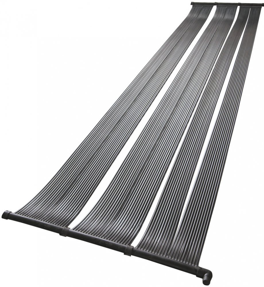 Systém solárních kolektorů se pomocí hadic propojí k filtrační pumpě (odtok vody) a bazénu (přítok vody). Průtokem v solárních panelech se voda zahřeje a vrací se zpět ohřátá do bazénu. Design solárních panelů byl navržen tak, aby mohlo docházet k ohřevu vody pomocí co největší plochy. Ohřev vody tímto způsobem je velmi efektivní a samotný ohřev vody je bez nákladů. Solární panel je vyroben z TPE (termoplastický elestomer) a PE (polyethylen) materiálu, nepodléhá korozi a ničení v důsledku působení rzi. Solární panely jsou oboustranné, což zvyšuje jejich životnost.